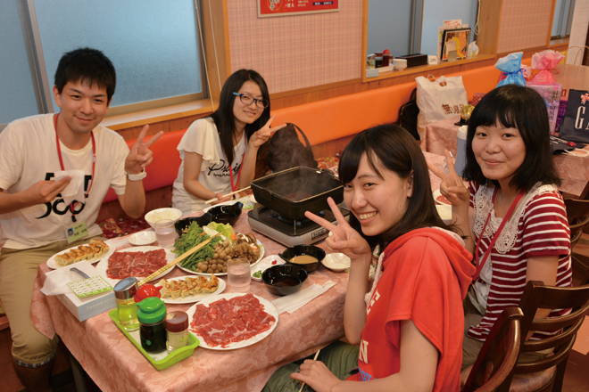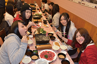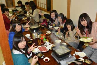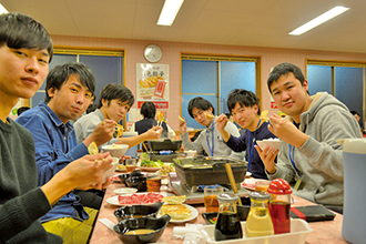合宿生の皆様に楽しんで合宿生活を送っていただくために、食事付きの歓迎会を行っています。